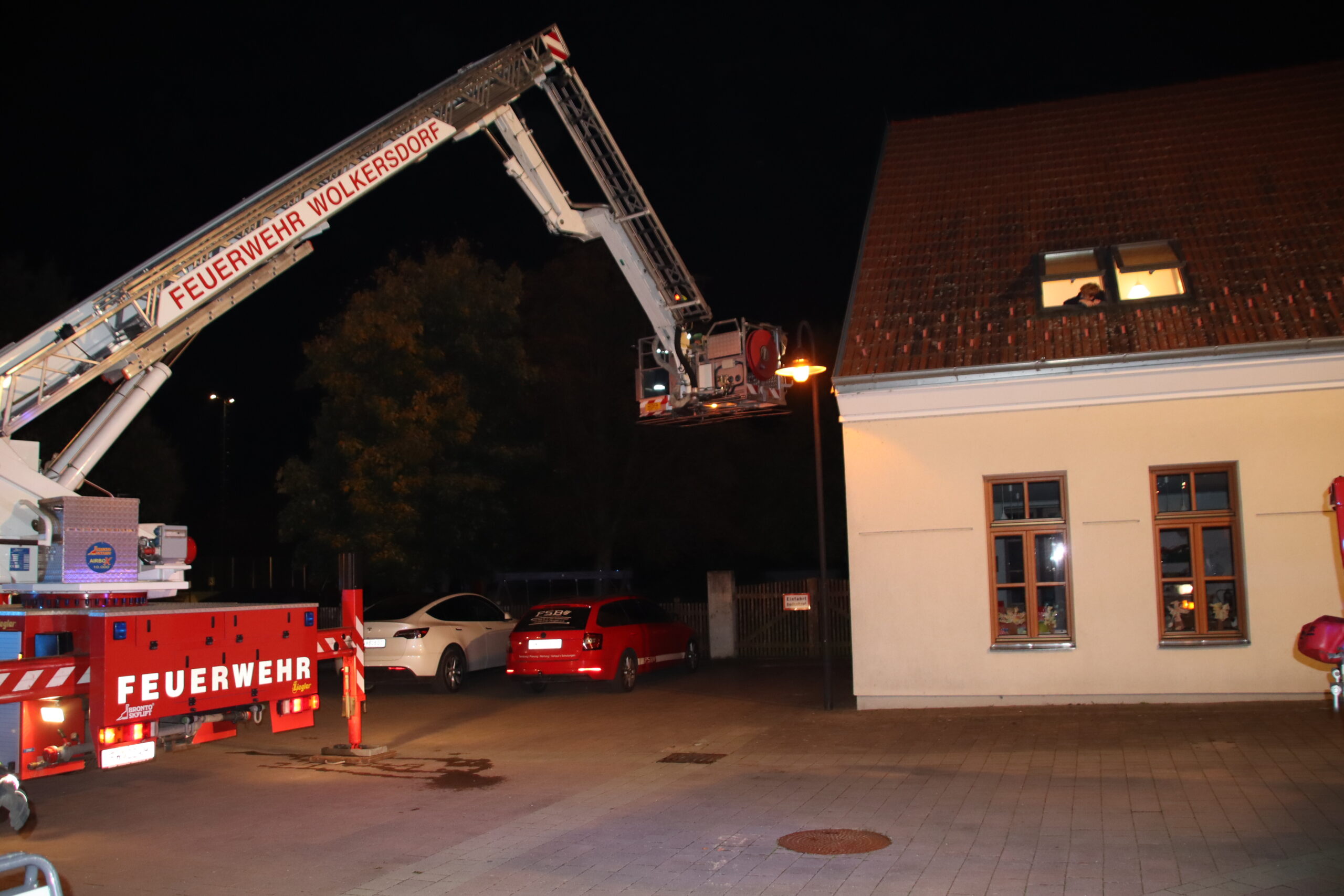 Wir waren mit Rüstlöschfahrzeug, Teleskopmastbühne und Kommando mit 14 Mitgliedern dabei.