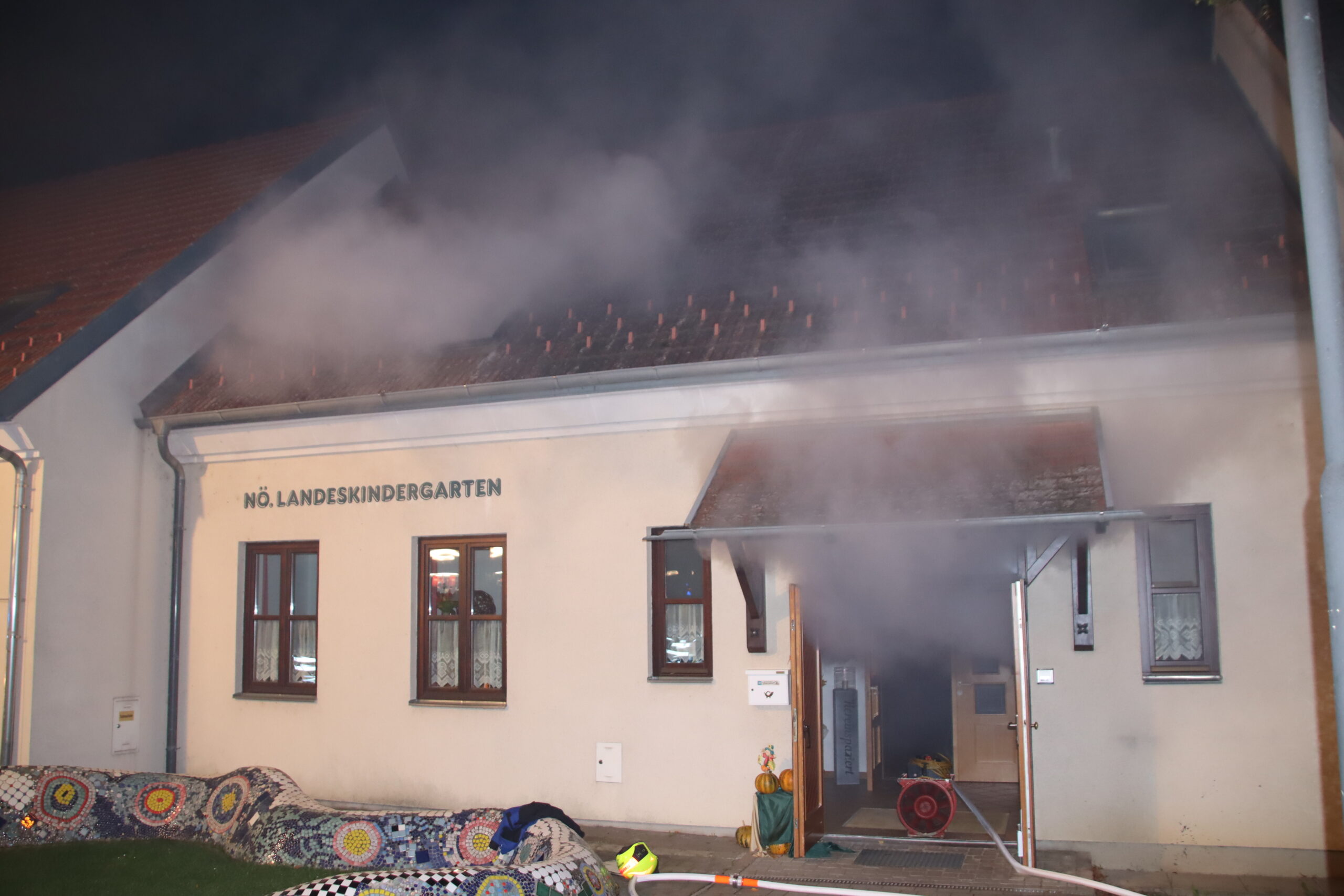 Die heurige Unterabschnittsübung führte uns nach Obersdorf, genauer gesagt in den Kindergarten. Übungsannahme war ein Küchenbrand im Erdgeschoß, wobei durch die starke Rauchentwicklung eine Flucht der 15 im Obergeschoss eingeschlossenen Kinder und Erwachsenen durch das einzige Stiegenhaus nicht möglich war.