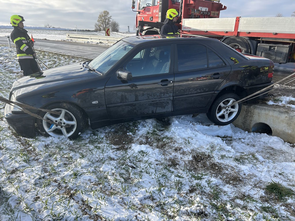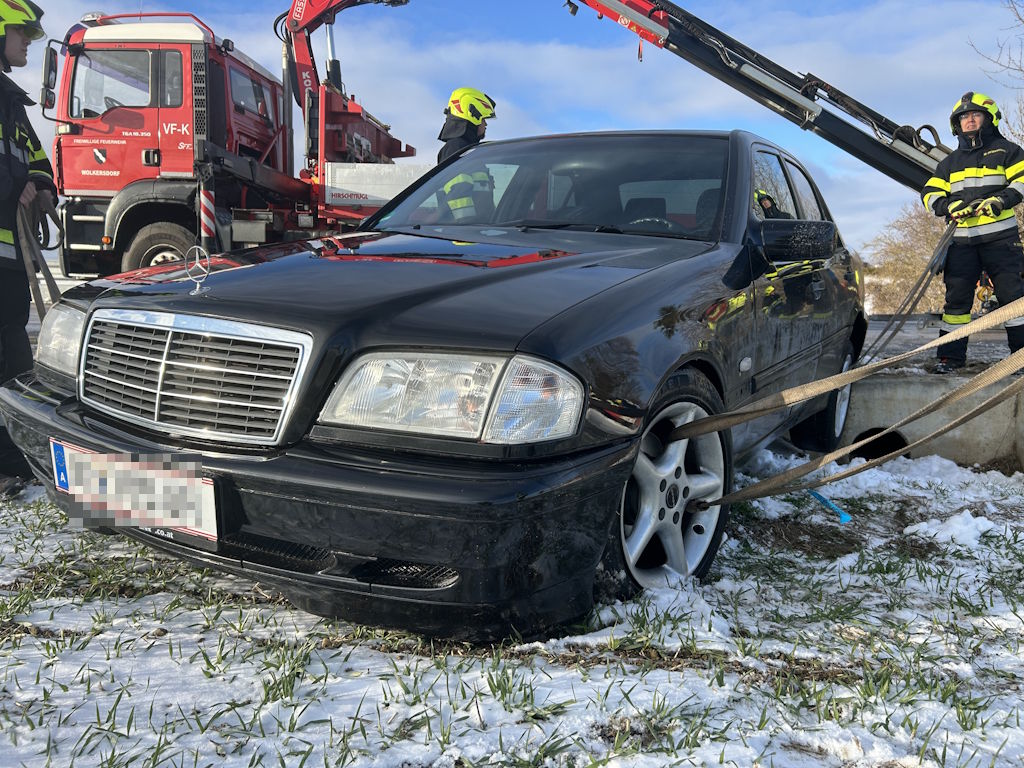 Um 13:55 Uhr wurde die Pager-Schleife „KRAN“ der FF Wolkersdorf von Florian Mistelbach alarmiert. Auf der L34 im Einsatzgebiet der Feuerwehr Münichsthal war ein PKW in den Graben gerutscht und saß auf einem dort befindlichen betonierten Kanal auf.