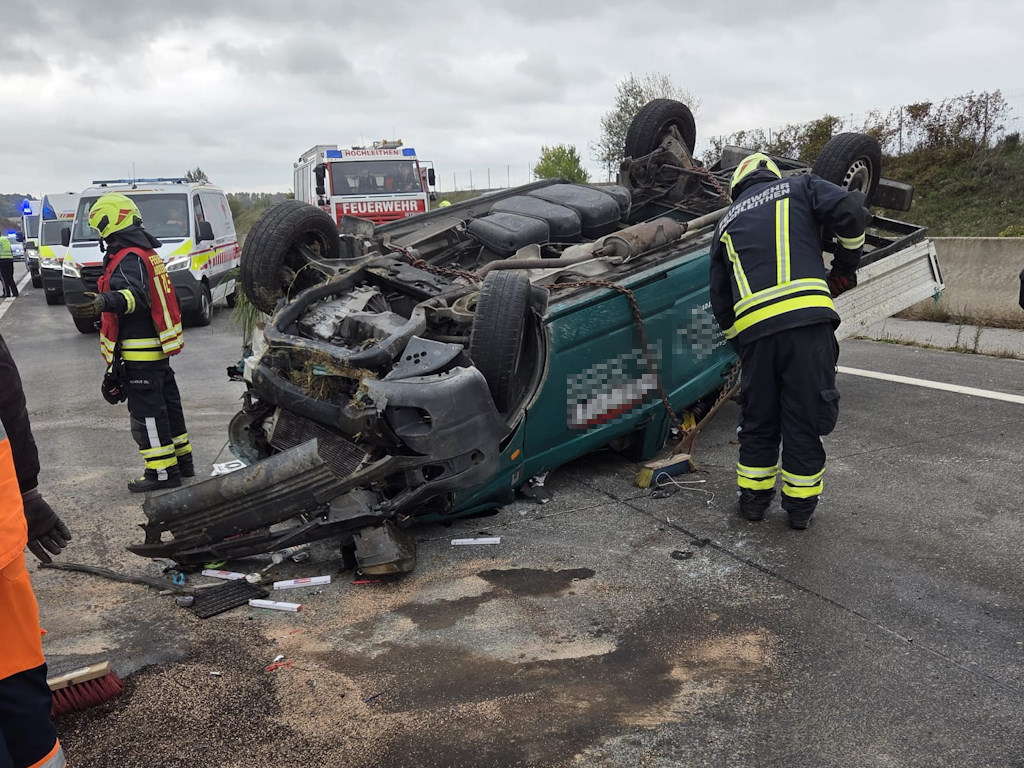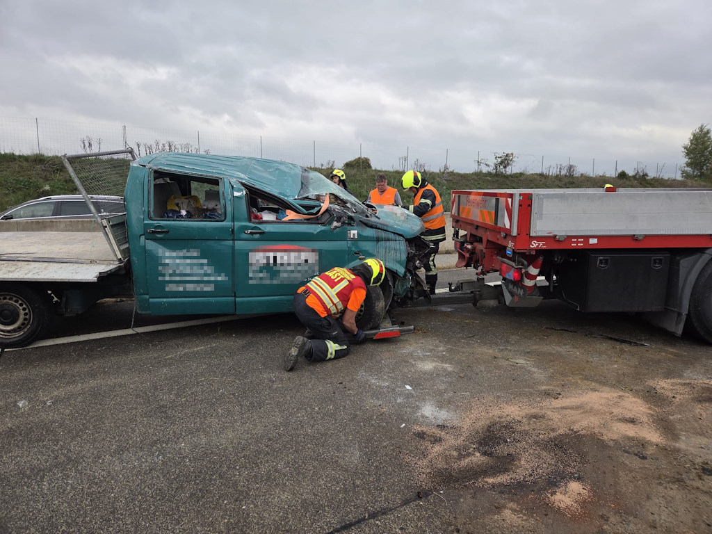 Last und Rüstlösch Wolkersdorf sind wenig später am Weg zum Unfallort – durch eine perfekt gebildete Rettungsgasse. Die Menschenrettung aus der am Dach liegenden Pritsche war durch die Feuerwehr Hochleithen bereits durchgeführt, das verletzte Unfallopfer wurde mit dem Notarzthubschrauber ins Krankenhaus geflogen.